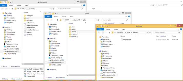 It will download a compressed file, so first of all uncompressed it and save it in the folder and name the folder ArduinoIO. Now open the Arduino IDE, I am using Arduino 1.0.6, click on the file menu and then open the ArduinoIO folder and select the .pde file of your interest from the Pde folder. I selected adioes.pde as it allows us to control servo motors. You may select other programs according to your choice. You may learn about various pde file by just opening it in Arduino IDE.